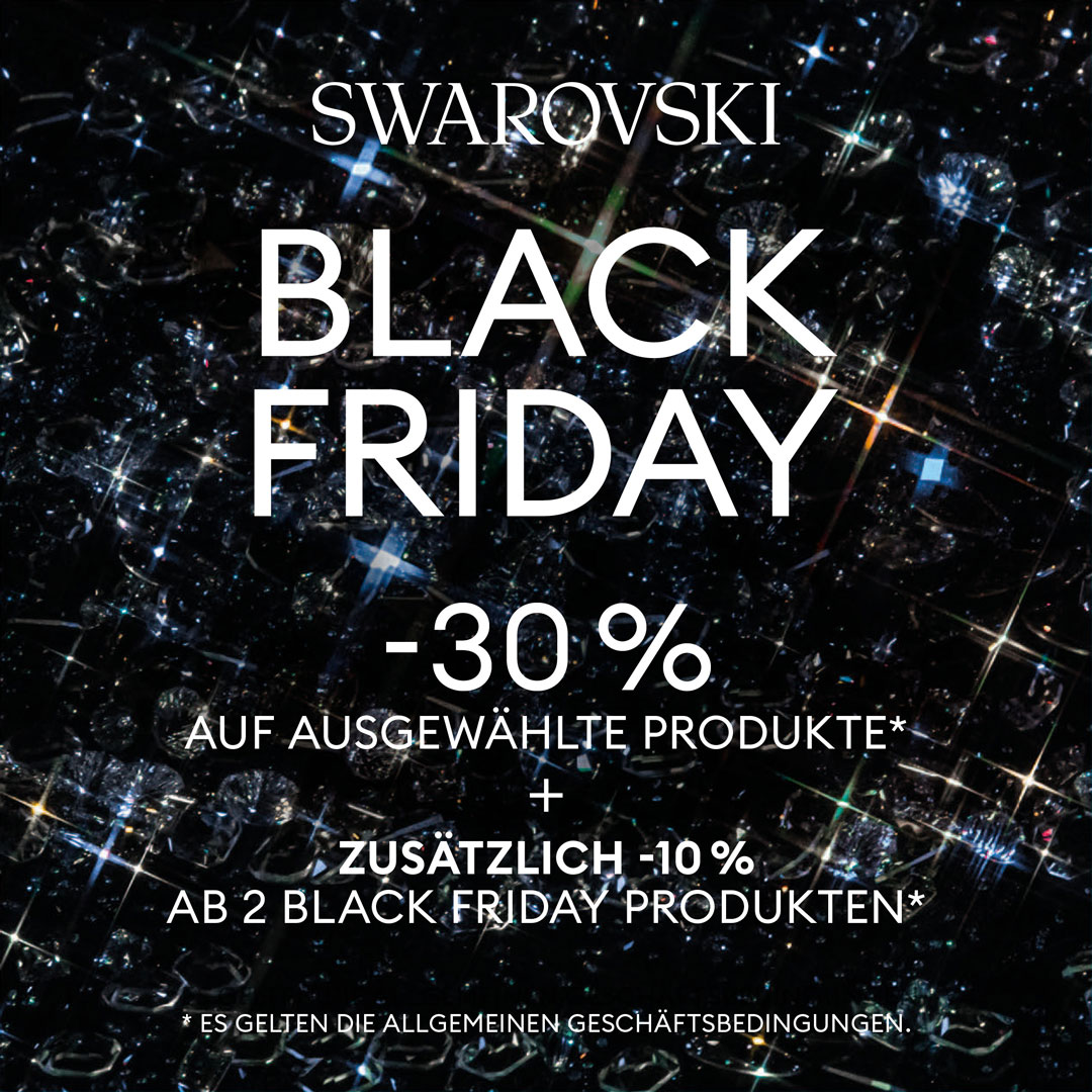 Zum Black Friday gibt es bei Swarovski -30 Prozent auf ausgewählte Produkte + zusätzlich -10 Prozent ab 2 Black Friday Produkten!