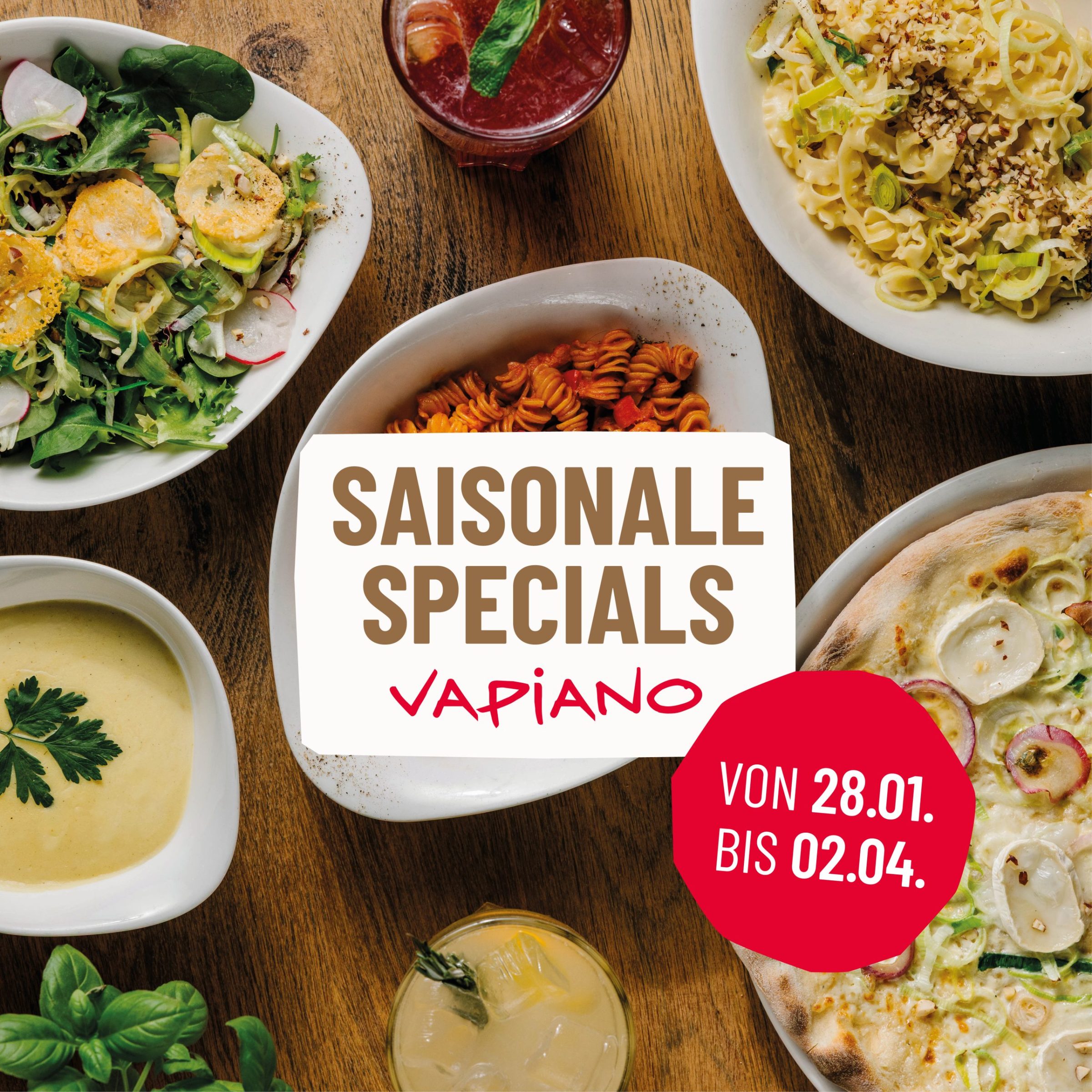 Zeit für neue Genussmomente bei VAPIANO in WIEN MITTE The Mall. Von 28. Jänner bis 2. April 2026 bringt VAPIANO neue, frische Gerichte auf den Tisch – unkompliziert, genussvoll und genau richtig für jeden Moment.