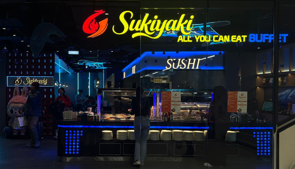 At Sukiyaki, you can enjoy an all-you-can-eat buffet with a wide selection of hot dishes, fresh sushi and maki as well as delicious desserts. The buffet offers the perfect dish for every taste.