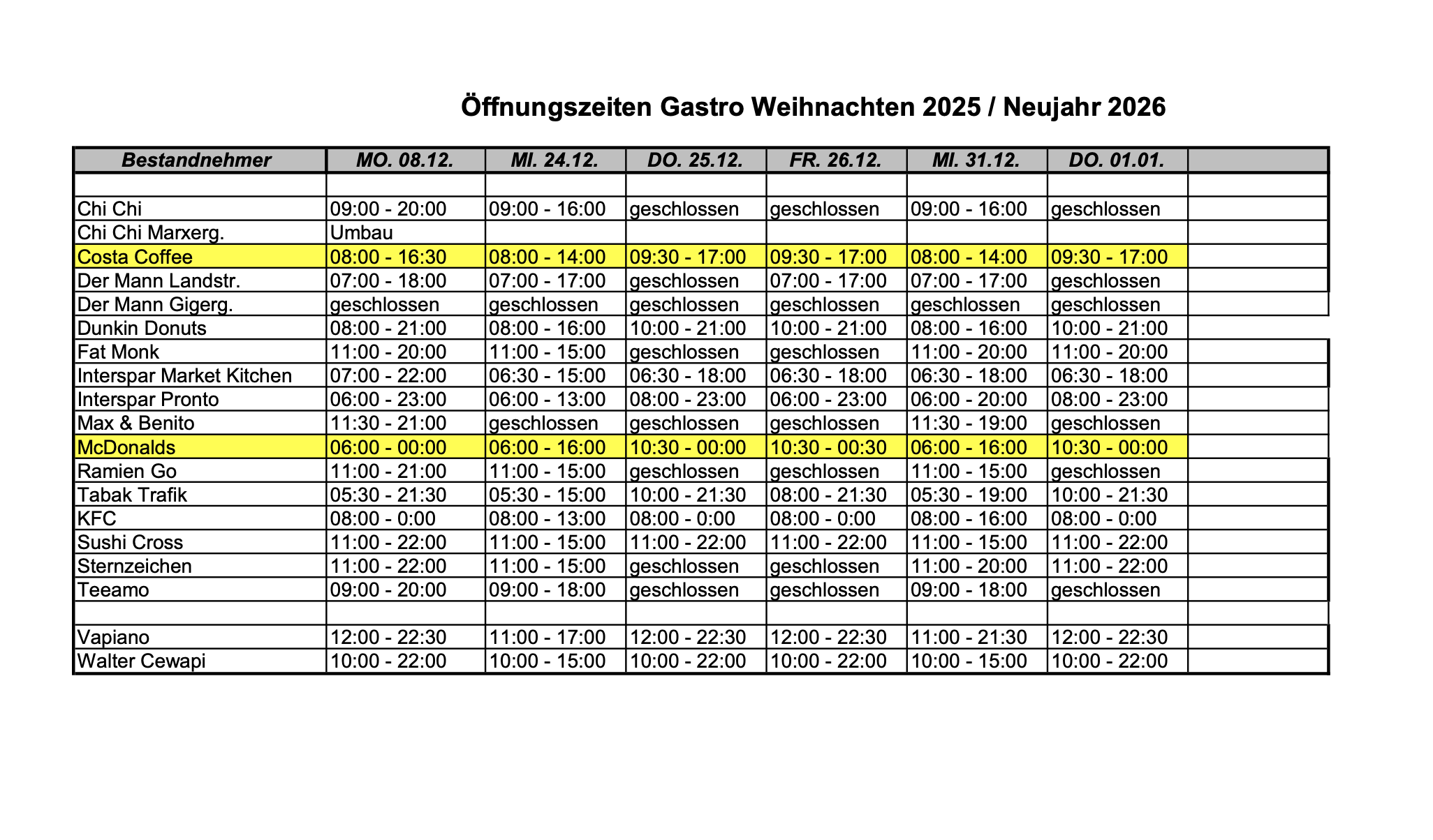 Hier finden Sie die Weihnachtsöffnungszeiten der Gastronomie!